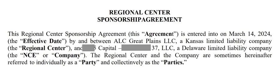 雷霆山体育中心项目 (Thunder Ridge Nature’s Arena, “雷霆山”) 是新法案下曾在中国市场上销售的一个美国EB-5投资移民项目。项目主办方是XX5 Capital区域中心。因该项目所在地位于XX5 Capital区域中心授权经营的范围之外,XX5 Capital区域中心被迫寻求其它区域中心的协助。2024年3月14日,XX5 Capital区域中心与ALC旗下地理范围覆盖雷霆山项目所在地的ALC Great Plains区域中心达成协议,由XX5 Capital区域中心租借ALC Great Plains的执照来运营这个项目 (图一) 。